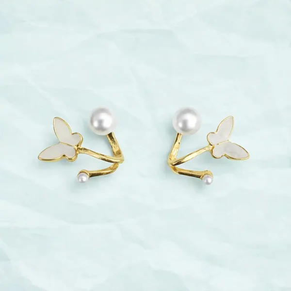 Elegant Gold Butterfly with Pearl Korean Earring
