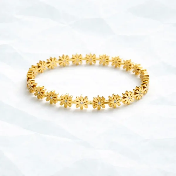 The design stands out because the floral daisy detail brings freshness to the bracelet and suits soft feminine collections, seasonal edits, and pretty gifting ranges. It suits daily wear, spring edits, festive gifting, casual styling, and stacked bracelet sets, giving retailers a product that can move across casual looks, gifting moments, and polished daily styling. The overall finish feels neat and photogenic, which helps the piece look attractive in thumbnails, reels, and product gallery images.