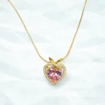 The design stands out because the pink heart focal point softens the polished gold look and creates a modern Korean necklace that feels cute without losing elegance. It suits daily styling, gifting seasons, festive edits, brunch looks, and evening accessories, giving retailers a product that can move across casual looks, gifting moments, and polished daily styling. The overall finish feels neat and photogenic, which helps the piece look attractive in thumbnails, reels, and product gallery images.
