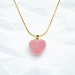 • Pink Frosted Heart Pendant Korean Necklace showcases a frosted pink